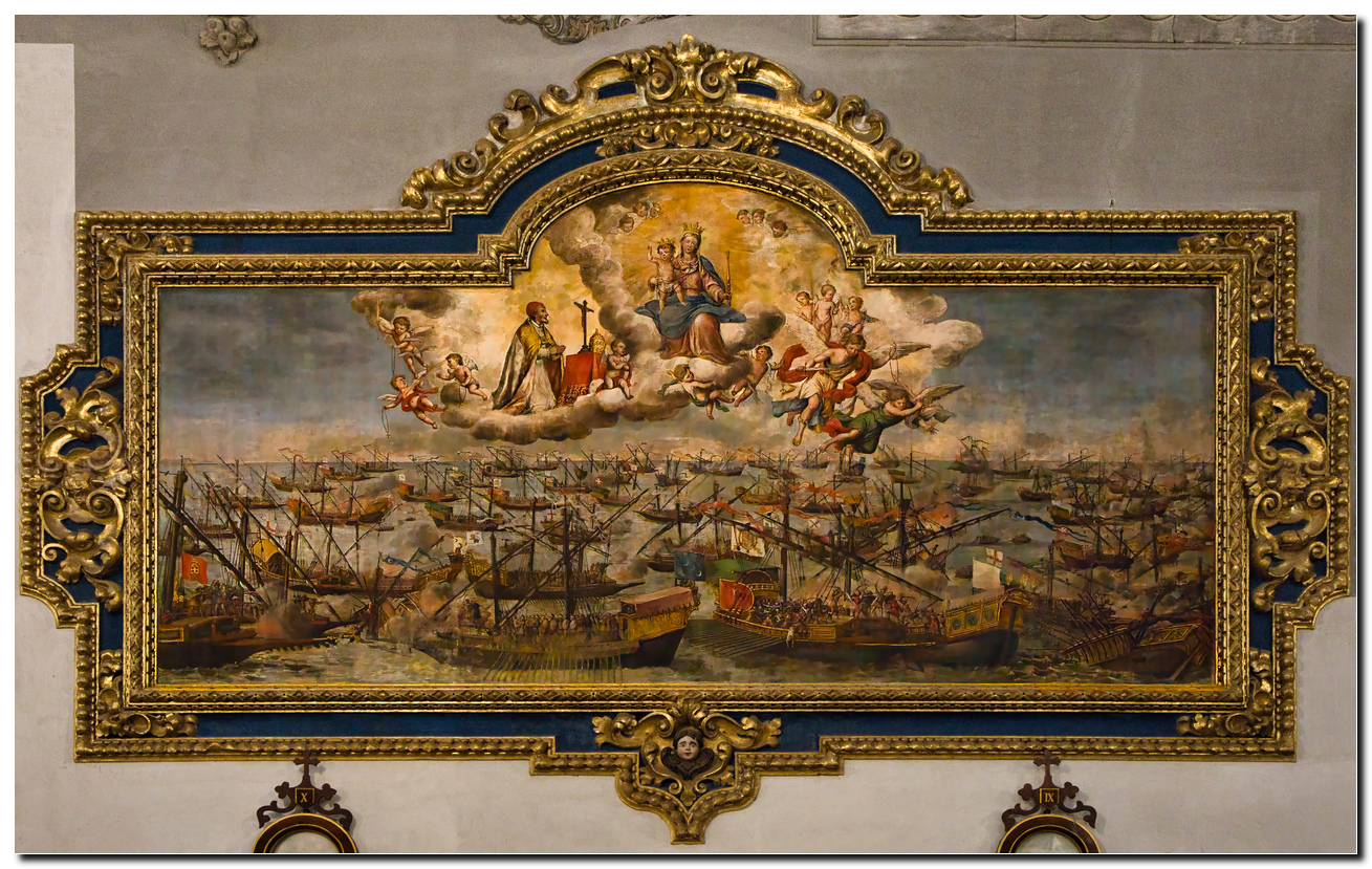 Durante la conversación mencioné la importancia de la Batalla de Lepanto para entender el contexto histórico de la actual Europa, del actual Occidente. Entonces, les comenté que si tenían tiempo se acercasen a la iglesia donde precisamente tendrían la oportunidad de contemplar el enorme y espectacular cuadro que alberga de Lucas Valdes dedicado a ese indudable hecho histórico.